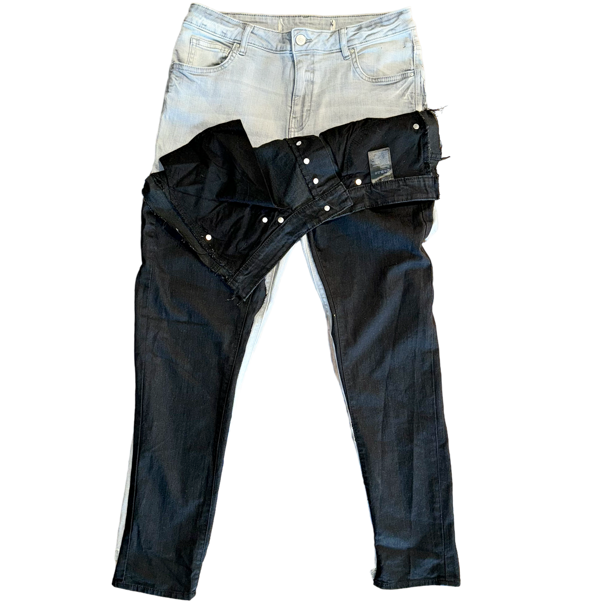 These slim fit gray jeans feature a unique design element - a pocket flap created from inside-out denim. This edgy twist on a classic piece provides a subtle look perfect for any casual or formal occasion.