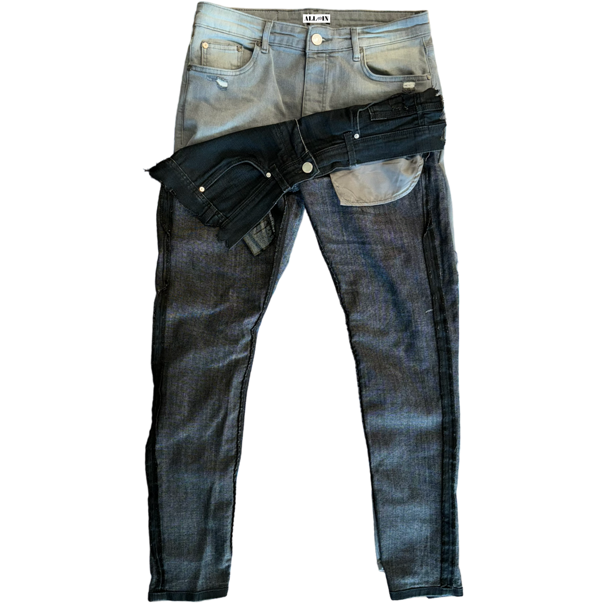 Experience comfort and style in these slim fit jeans from Inside Out. Crafted from a grey-black denim blend, this pair features an inside out over flap to add texture and flair to your look. Perfect for any occasion!